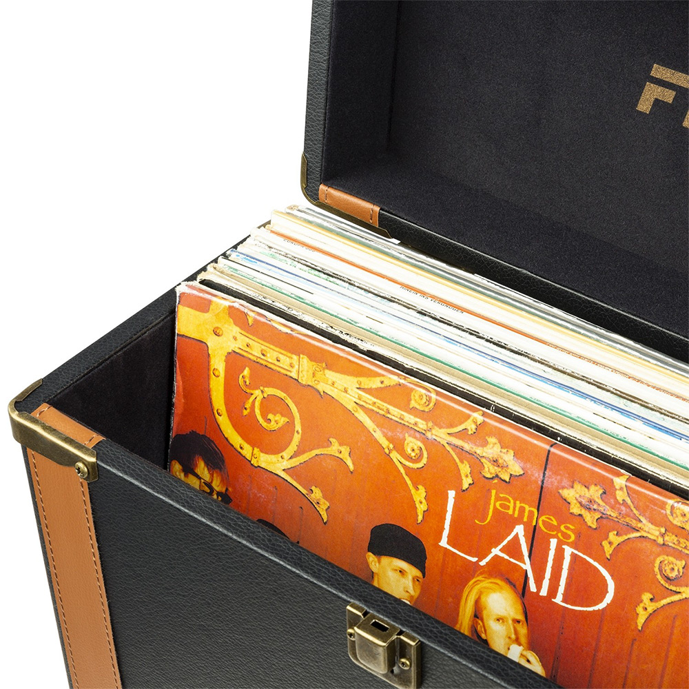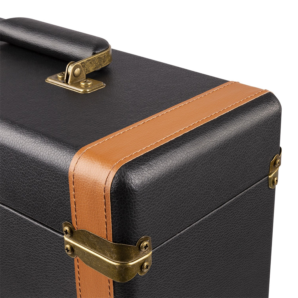 The RC35 series Luxe vinyl record cases will keep 30+ of your favourite records safe and secure. The case is fitted with luxurious brass details, such as lock, carrying handle and hinges and the inside is lined with soft flannel lining to avoid your collection being scratched and crushed when transporting. Suitable for the storage of 7, 10 or 12 inches records.